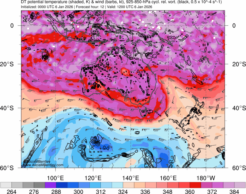 Understandably there is, and will be, a lot of commentary about this heatwave and the mechanisms behind it. For example, the ABC reports that the heatwave is a result of a “strong high-pressure system … causing a jam in the flow of weather … preventing the heat from moving swiftly from west to east, … leading to days upon days of warmth”. No doubt, climate modes of variability such as the El Niño Southern Oscillation (ENSO) and local SST anomalies around the continent will also be invoked by some in the coming days - although many of them do not line up in this case. Neither what you may see on a surface synoptic chart, nor the usual climate variability talking points are the cause of this event. The answer - as it always does in extreme heat in the southeast - lies about kilometres above the earth’s surface.